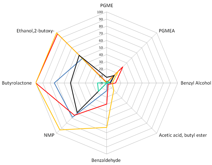 Analysis objects: Common species in PHOTOarea: PGME, PGMEA, cyclohexanone, Benzyl alcohol, etc Common species in the stri...