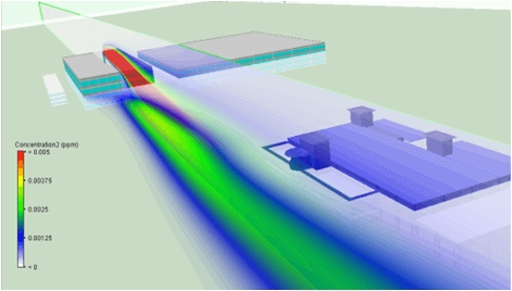 所謂CFD(Computational Fluid Dynamics,計(jì)算流體力學(xué)),系指一種計(jì)算機(jī)的仿真技術(shù)。而所謂的外流場,是指廠房與廠房之間氣流的交互干擾與影響。利用CFD軟件,搭配氣象風(fēng)向數(shù)據(jù),我們可以將實(shí)際的整個廠房與廠房之間的詳細(xì)相對位置以計(jì)算機(jī)模型呈現(xiàn),并提供流體與污染物擴(kuò)散計(jì)算分析,藉以判斷不同廠房與廠房之間是否存在交叉污染或自己廠房的新風(fēng)入口與廢氣排氣是否存在潛在交叉污染,并可以利用計(jì)算機(jī)模型進(jìn)行最佳廠房擺設(shè)方案的優(yōu)化設(shè)計(jì)確認(rèn)。