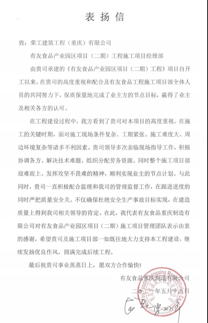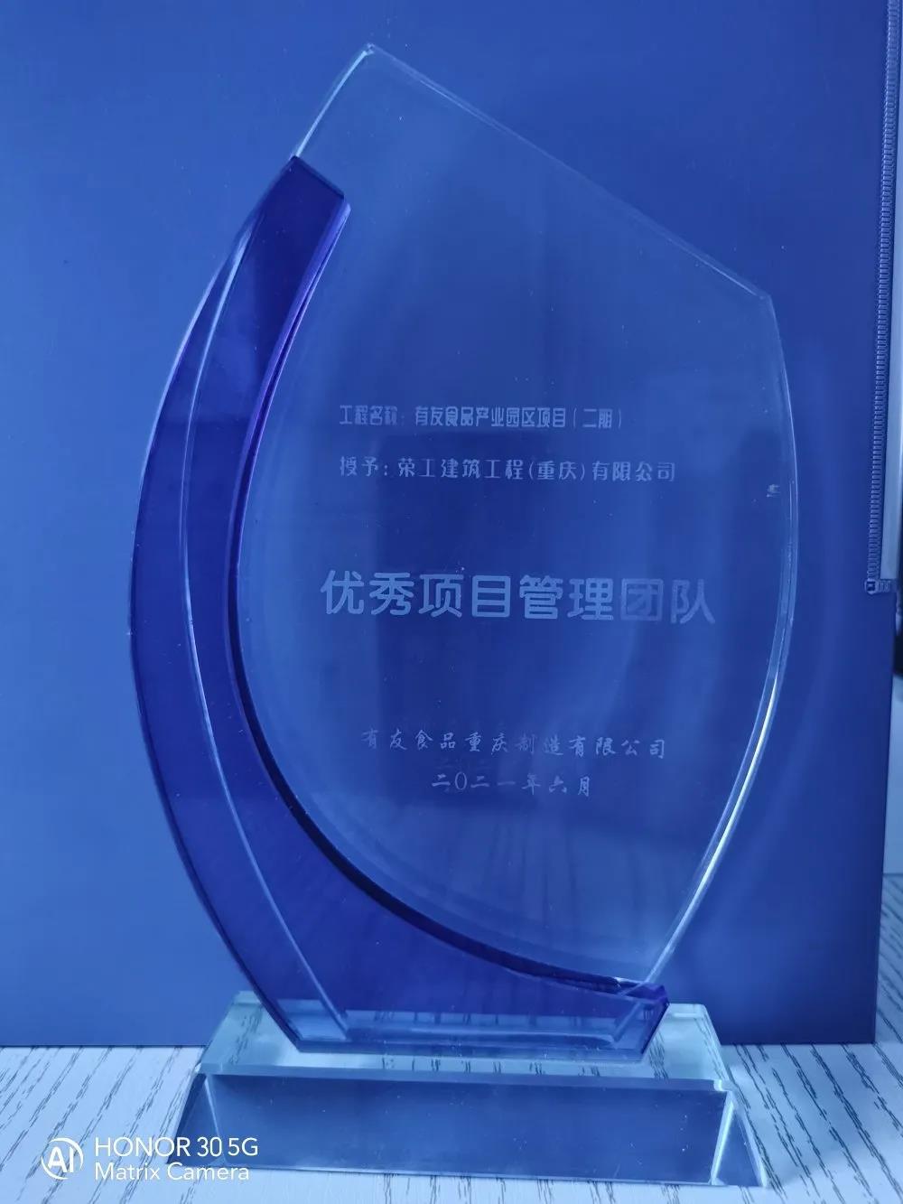 重慶有友項目獲業主?頒發的優秀項目管理團隊獎杯及表揚信