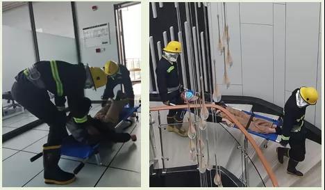 各部門人員清點后,發現設計處1人未到達緊急集合點,現場指揮立即安排救援組人員進行搜救,成功將被困人員從火災現場救出,醫療救護組進行了簡單急救后送醫院救治。