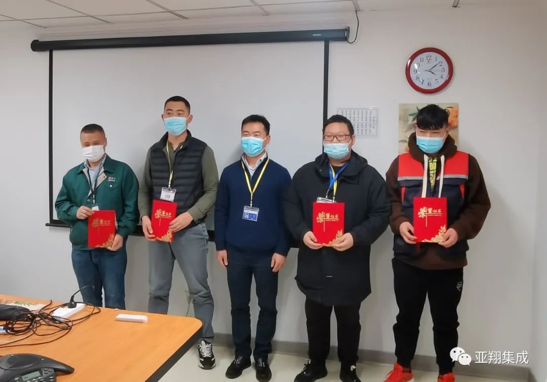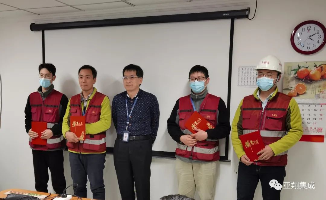 接著,由和艦廠務工程處林俊生經理為亞翔集成四位工程師頒發“優秀個人獎”,安全意識優良、技術服務專業,并合影留念。