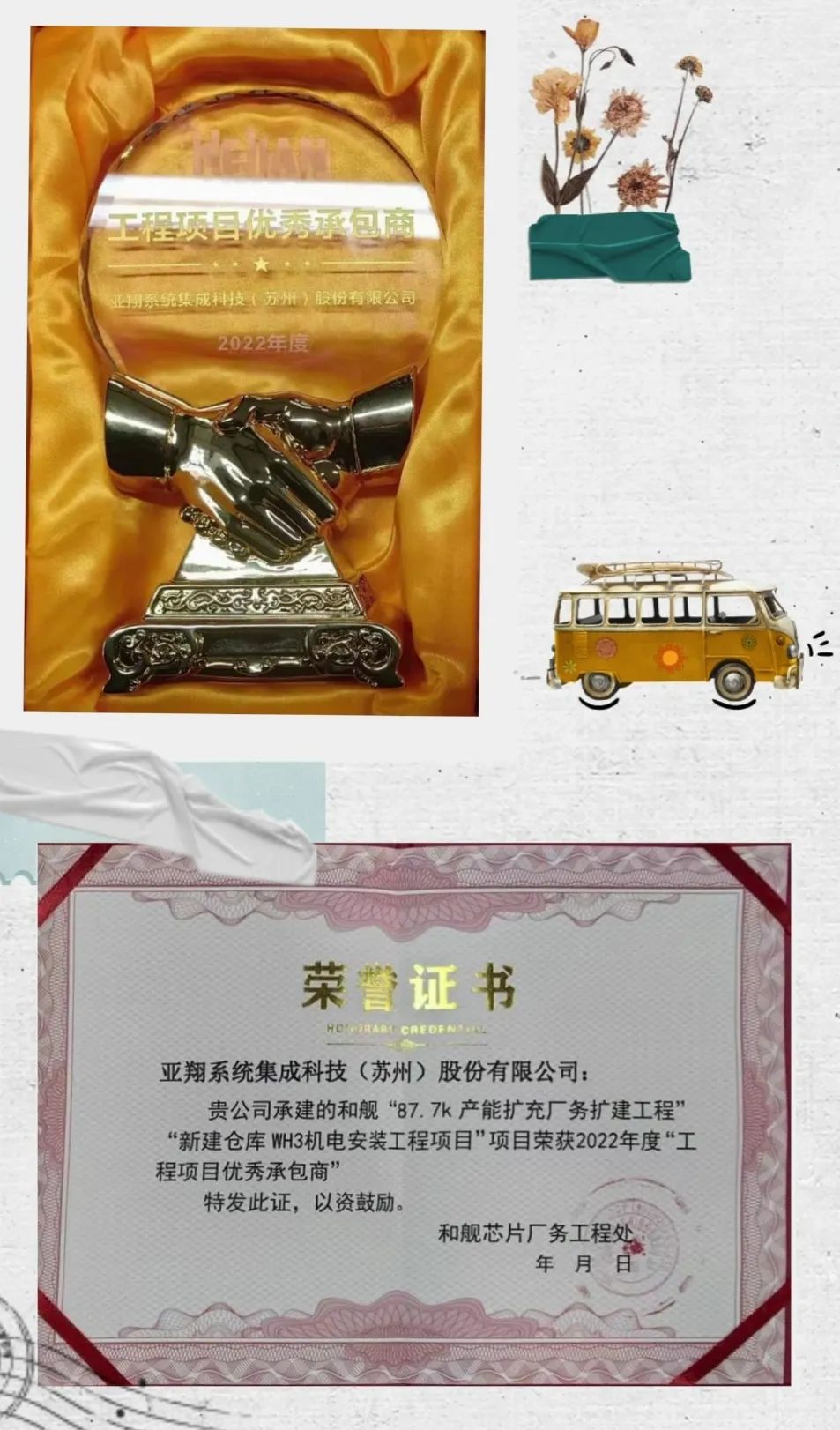 亞翔集成榮獲蘇州和艦2022年度“工程項目優秀承包商”獎