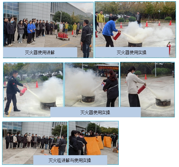 現場指揮馮工介紹了干粉滅火器及滅火毯的使用方法,講解完畢,由現場員工實操。通過實操,實現了理論與實際相結合,使得每位員工都能很好地掌握滅火器及滅火毯的使用方法。
