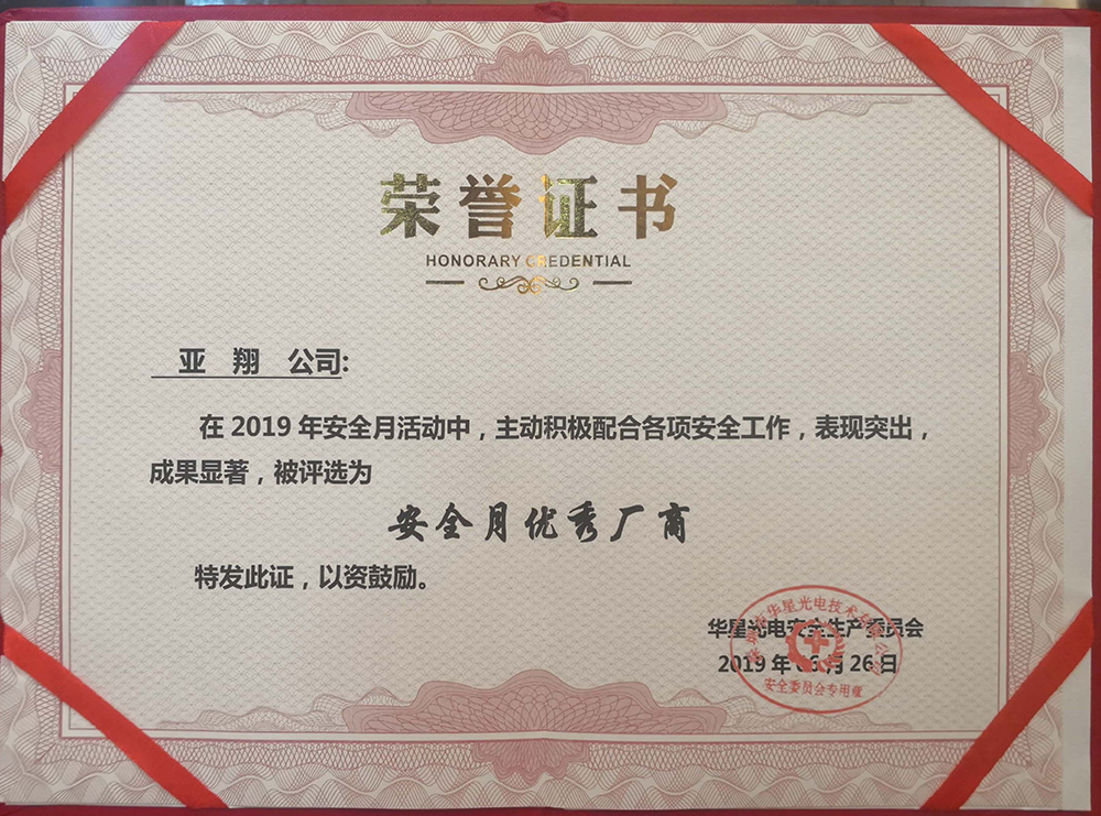 20190626獲評(píng)華星光電安全月優(yōu)秀廠商