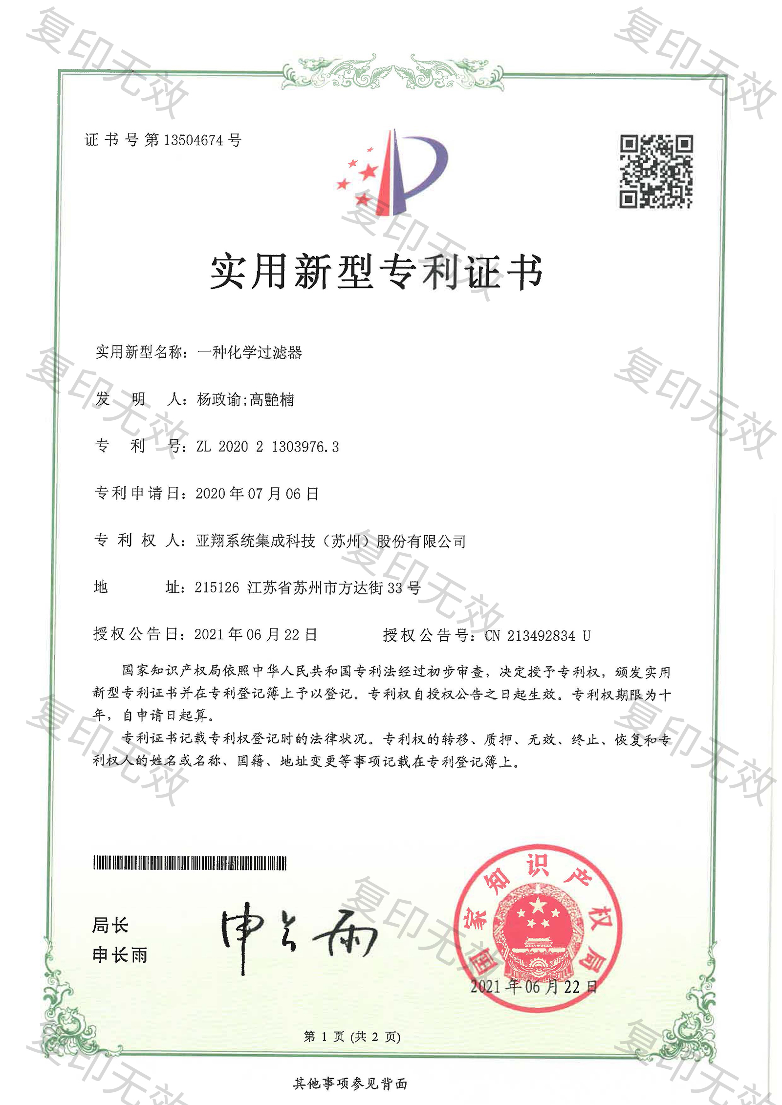 NO.100-一種化學過濾器