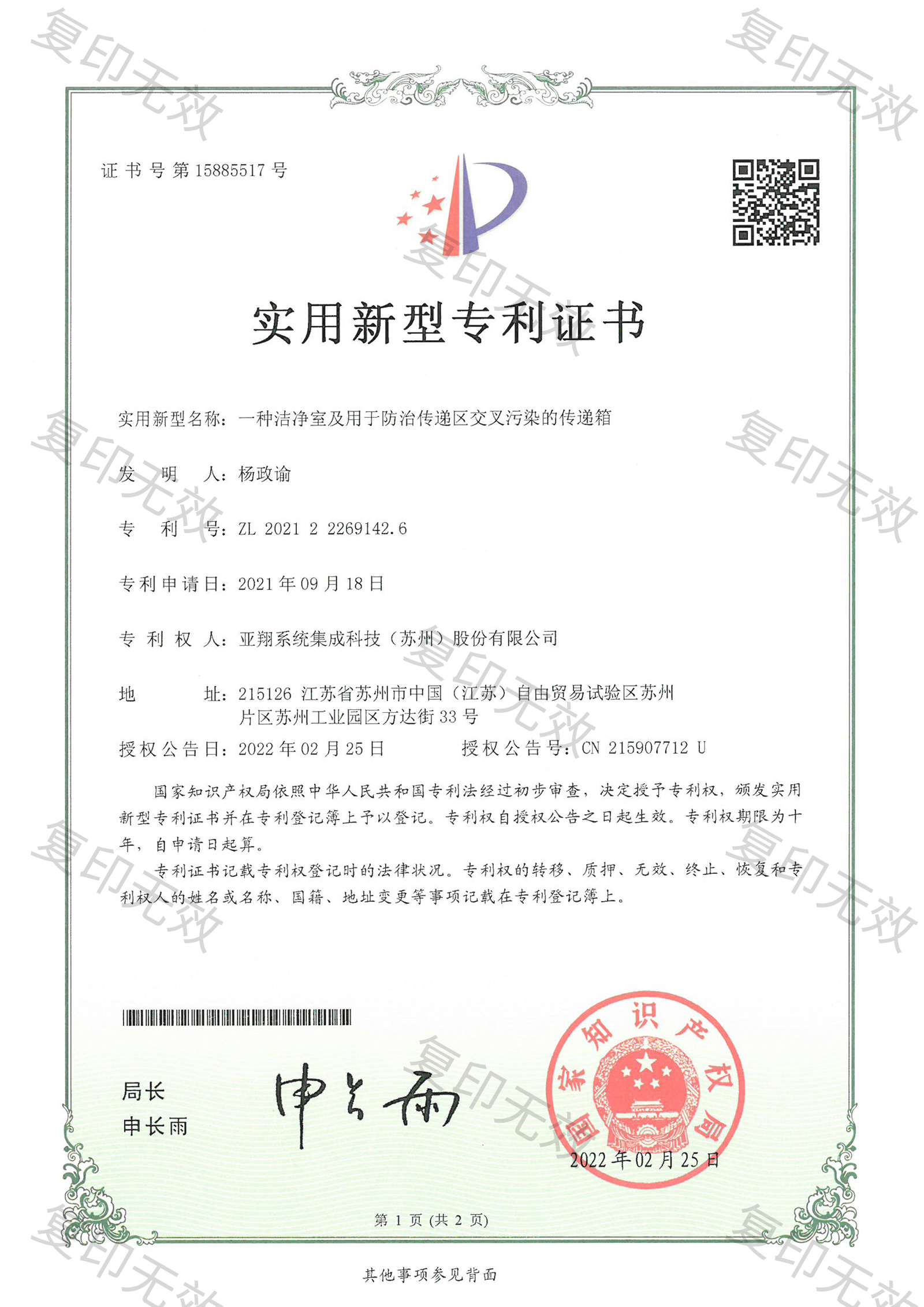 NO.114-一種潔凈室及用于防治傳遞區交叉污染的傳遞箱