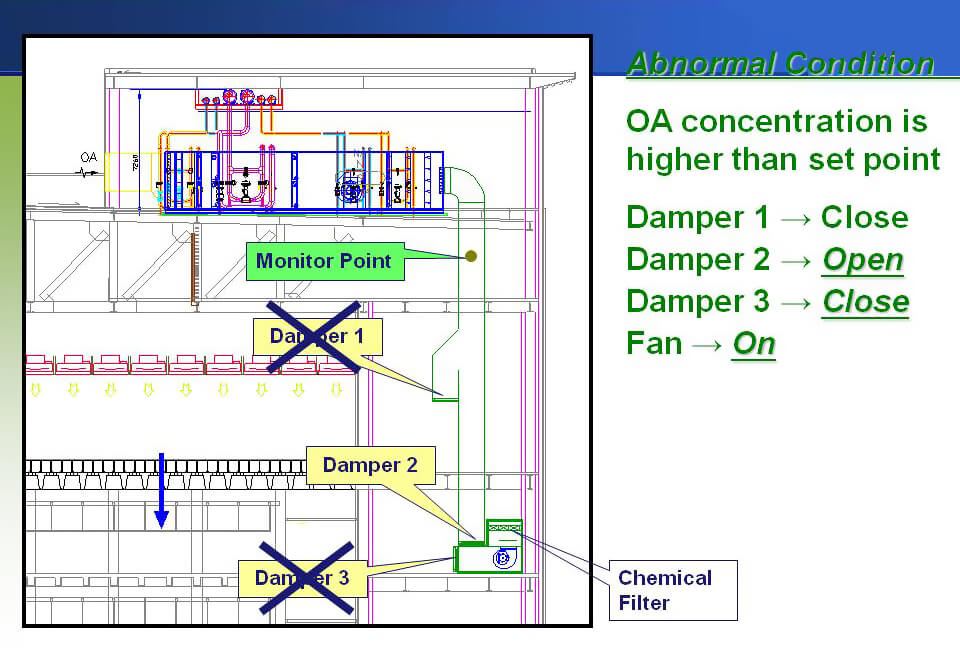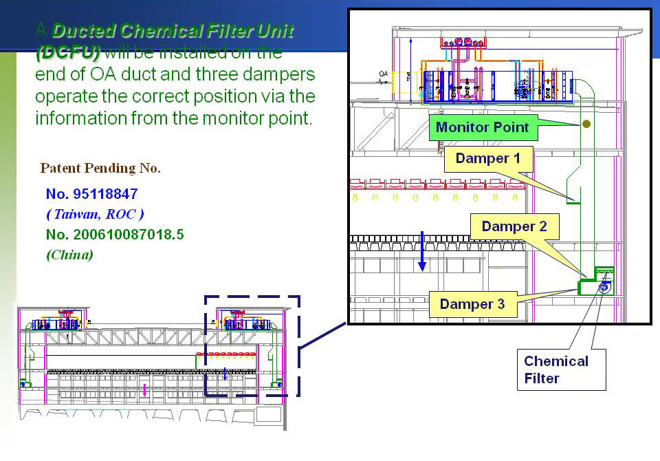 所謂的DCFU系統,意指將化學過濾器結合于一個具有風機的單元,并直接連接于風管末端,故名為”風管式化學過濾單元”。