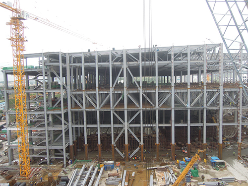 我司承接CR廠房1&2標(biāo)段,總面積約42000平方米,本工程設(shè)計為地面4層,總高度40m;主FAB為鋼結(jié)構(gòu)+奇氏桶+高架地板構(gòu)造, L20層為ARRAY段,L40層為OLED段,施工周期2017/8/20~2018/1/30