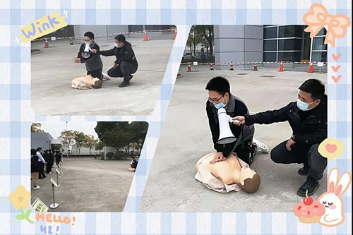 醫療救護組成員(持救護員證)現場講述了胸外按壓的操作要領及注意事項,並對假人進行胸外按壓急救演示。