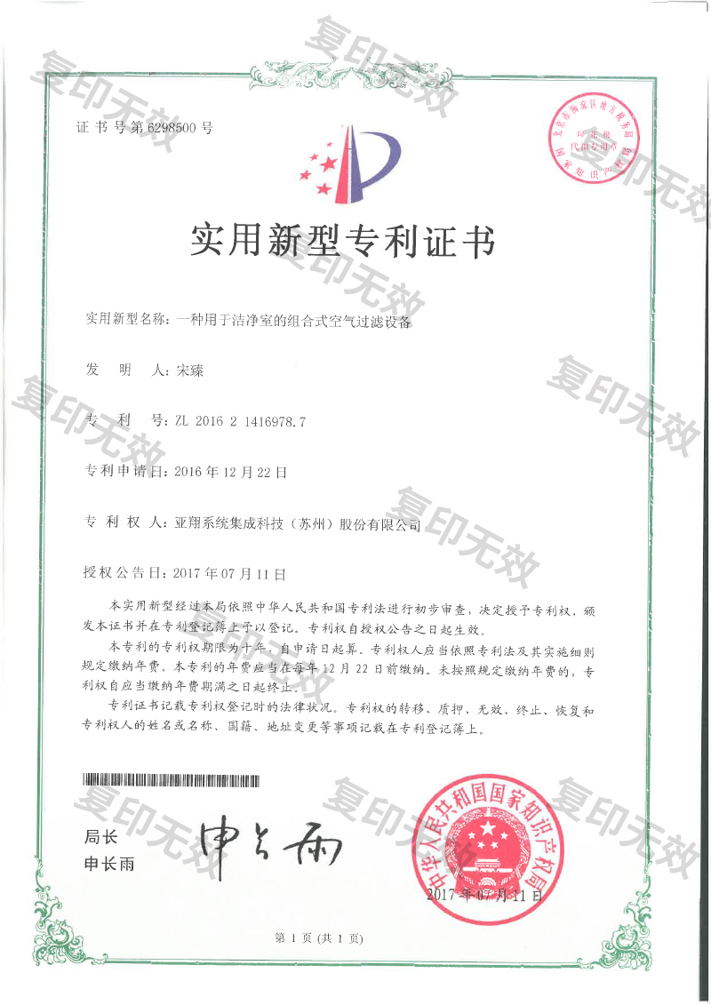 一種用於潔淨室的組合式空氣過濾設備