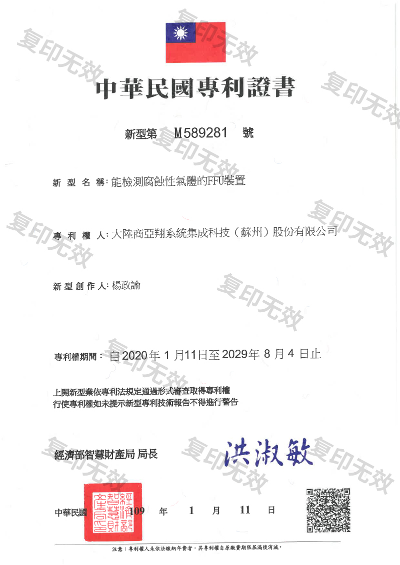 能檢測腐蝕性氣體的FFU裝置(臺灣)